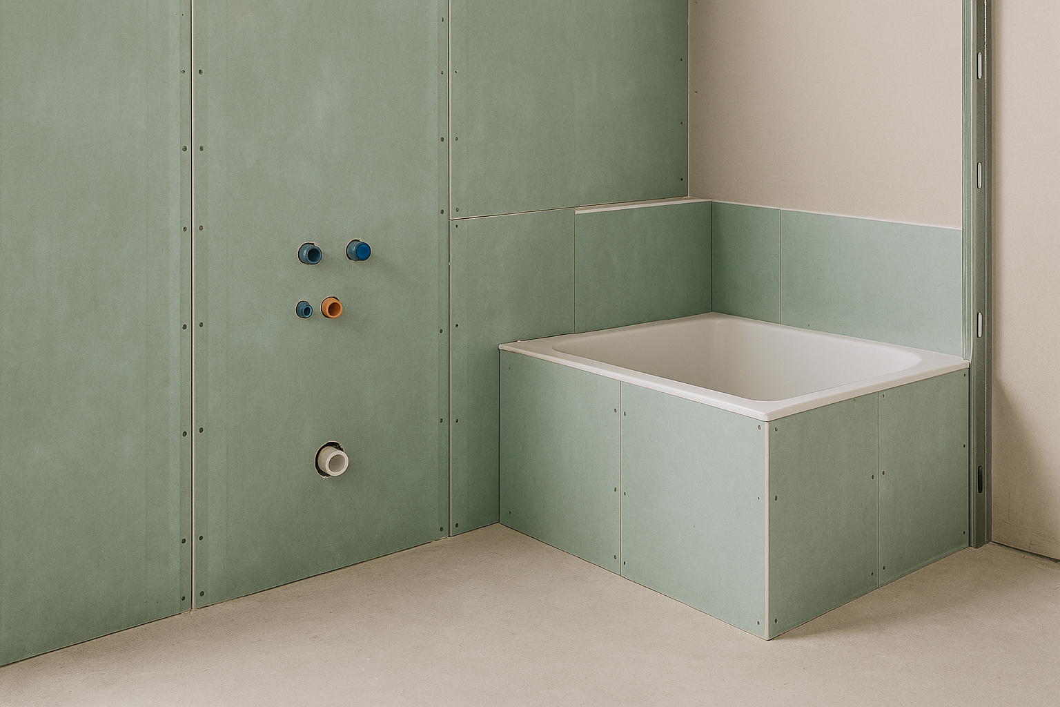 Mit feuchtigkeitsbeständigen Gipskartonplatten gestalten wir sichere Trockenbaulösungen für Bäder, Küchen und Kellerräume – schimmelresistent und langlebig.